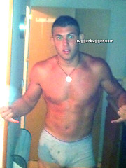 Ruggerbugger has horny private photos of French wrestler Victor Biscioni hanging with his buddies and modeling with his ass exposed.