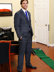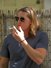 Marcello winds down by smoking a big cigar and taking off his leather shoes, before cumming inside a brandy glass