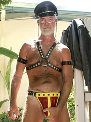 Daddy bear Dan Black in leather gear