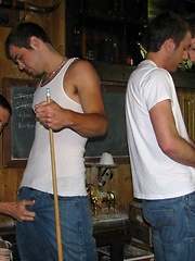 Hot stud gets fucked and cum on his face at a public bar.
