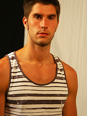 Hot Latino stud David Reyes jerks his hard throbbing cock, teases his sensitive cockhead while he plays with his precut, and shoots his load all over