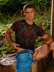 Ripped Murray poses outdoors then goes inside and reveals his big cock