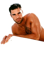 Tattooed Milo Bradley busts a nut onto his hard stomach.