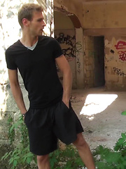 Tall twink Tommy Jax jerking off outdoors.