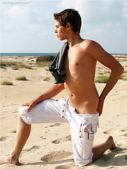 Cute young twink exposing his ass and cock on the sandy beach.