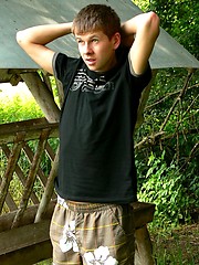 Hot straight boy posing outdoors