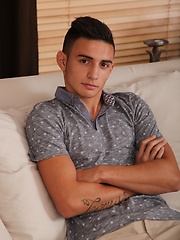 Gorgeous guy Romeo slowly strips and exposes his bare ass.