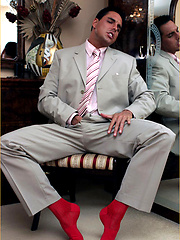 Italian Stallion Marcello is dressed in a pin stripe suit and he loves to masturbate hard