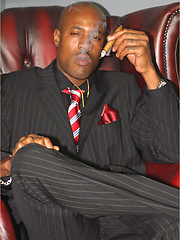 Smoking hot gay black man takes off his suit pants and plays with his cock