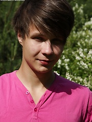 Smooth twink Zack Ball busts a nut onto his stomach.