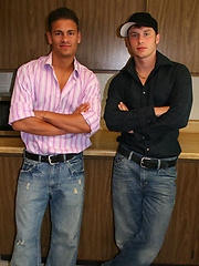 Shane Fisher gives CJ Crawford an awesome blowjob, his first from another guy, and they both shoot nice thick loads all over Shane\'s chest.